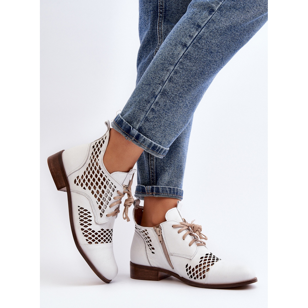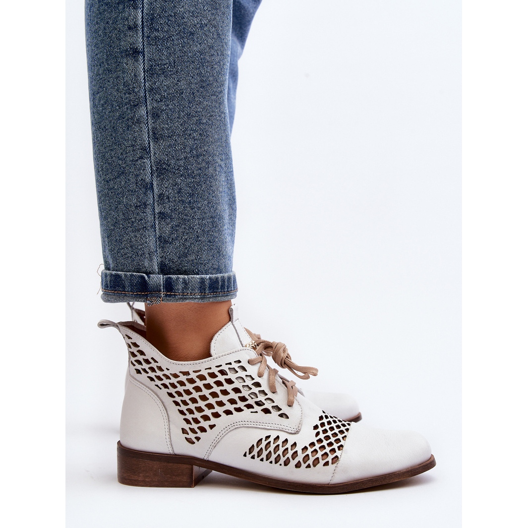 Détails: Zazoo 2704 Bottes Ajourées En Cuir, Blanc blanche