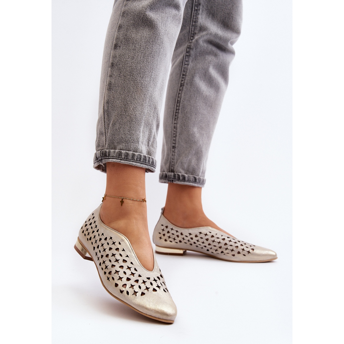 Zazoo Zazoo 2883 Ballerines ajourées en cuir naturel, doré d'or