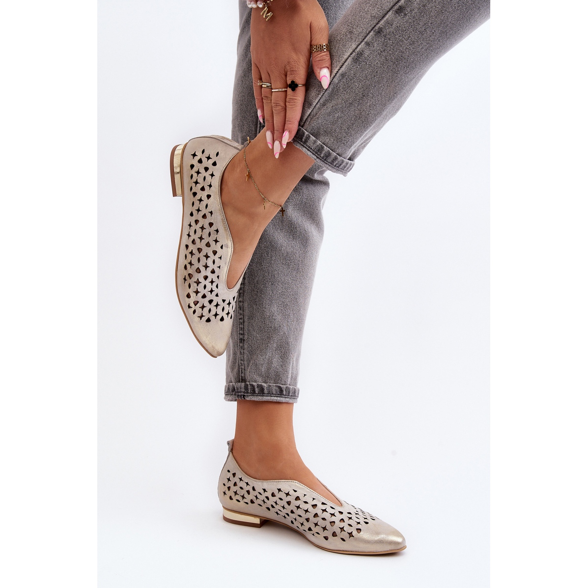 Détails: Zazoo 2883 Ballerines ajourées en cuir naturel, doré d'or