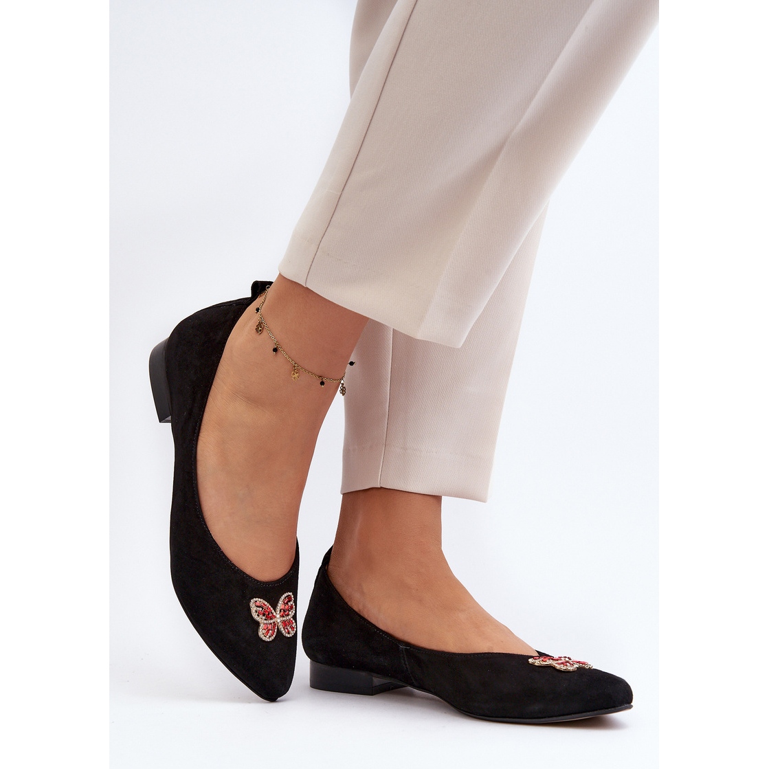 Zazoo Zazoo 2887 Ballerines en daim avec papillon décoratif, noir le noir