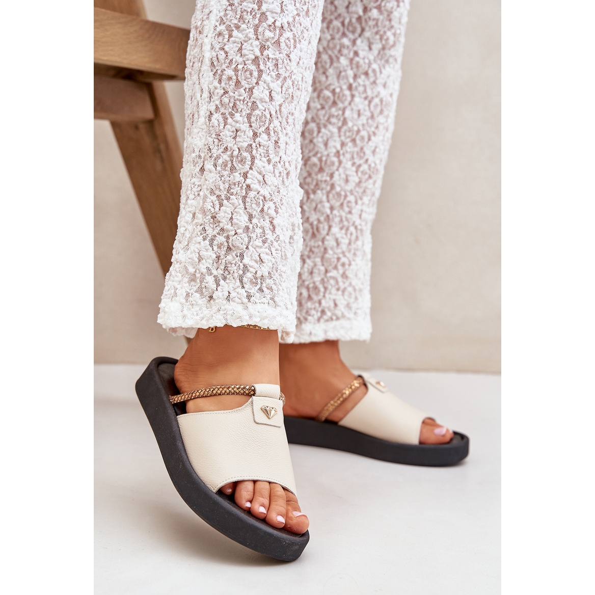 Zazoo Zazoo 2896 Slippers en cuir féminin beige