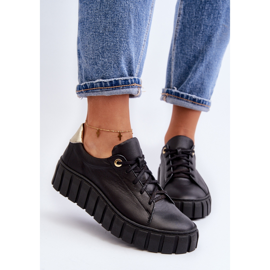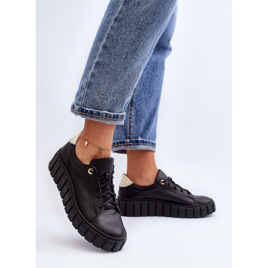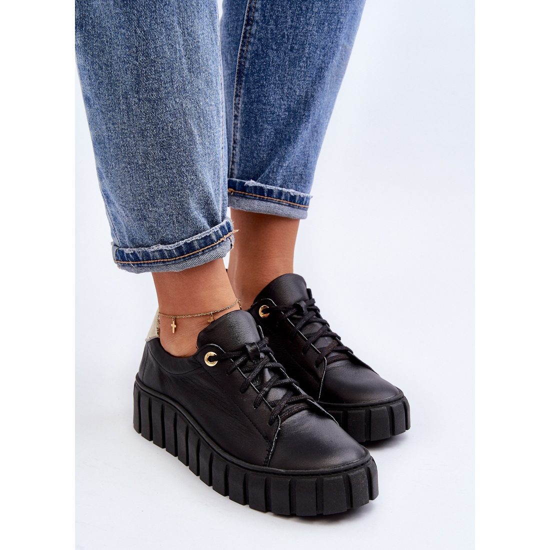 Détails: Zazoo 2919 Chaussures en cuir à semelle épaisse pour femme, noir le noir
