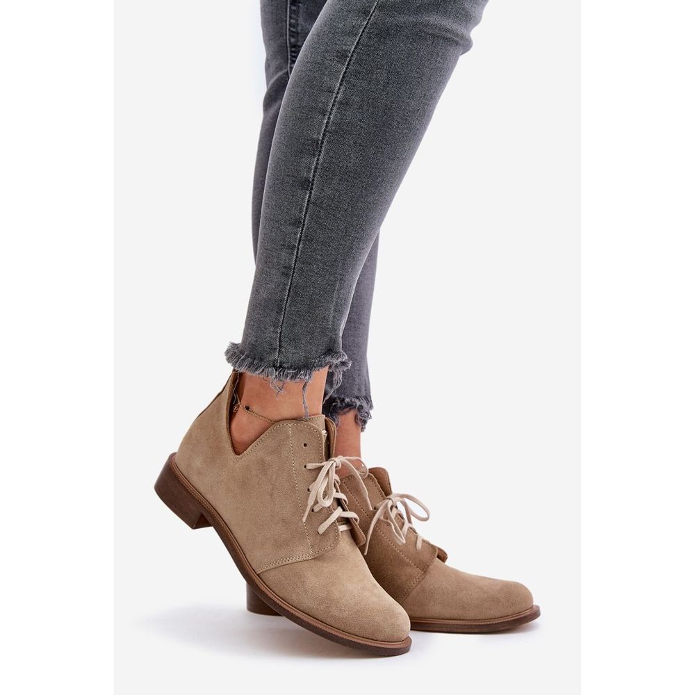 Détails: Zazoo 2959 Chaussures Oxfords à Lacets en Daim à Talons Plats Beige