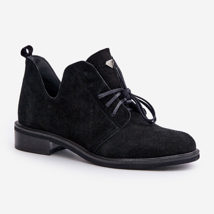 Les chaussures Oxford à lacets en daim Zazoo 2959 avec talon plat en noir sont un choix parfait pour les femmes qui apprécient la classe et le confort. Fabriqués en cuir naturel de haute qualité, ils offrent non seulement un aspect esthétique, mais également une durabilité et un confort de port.