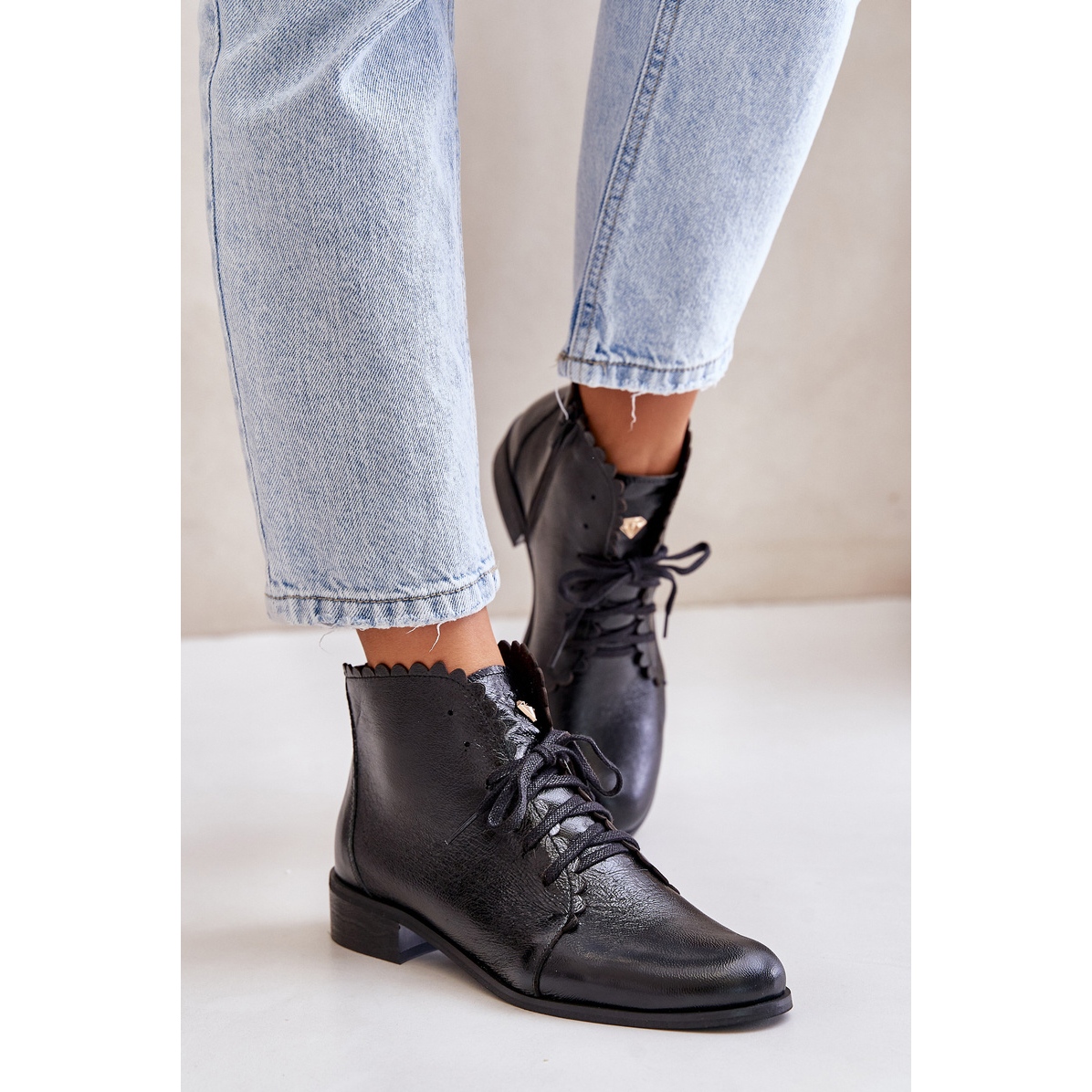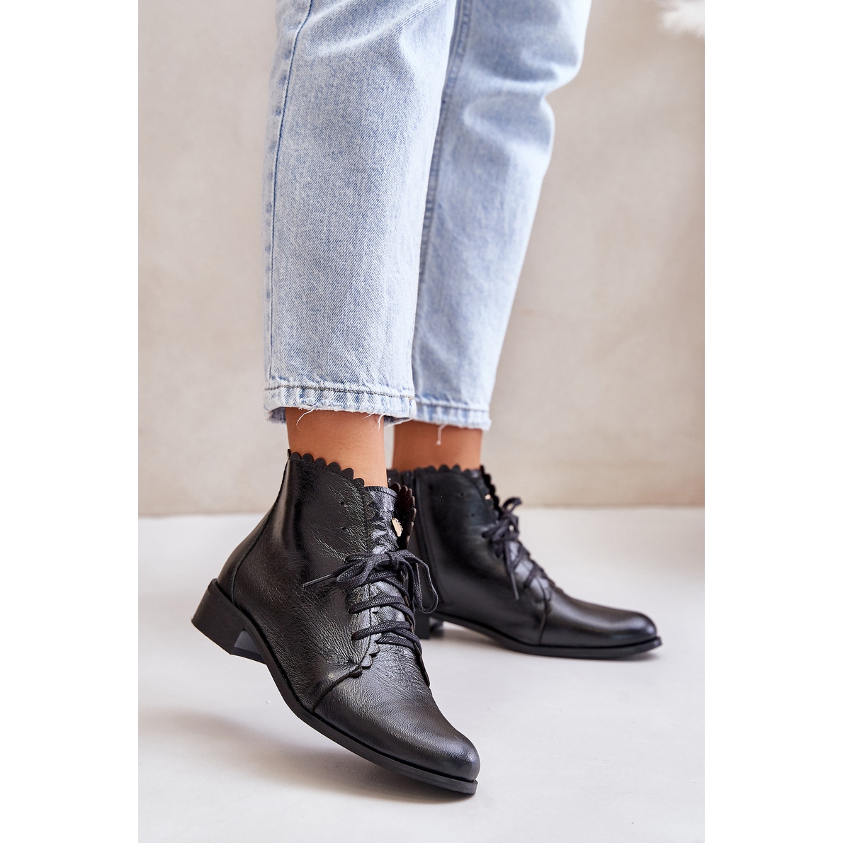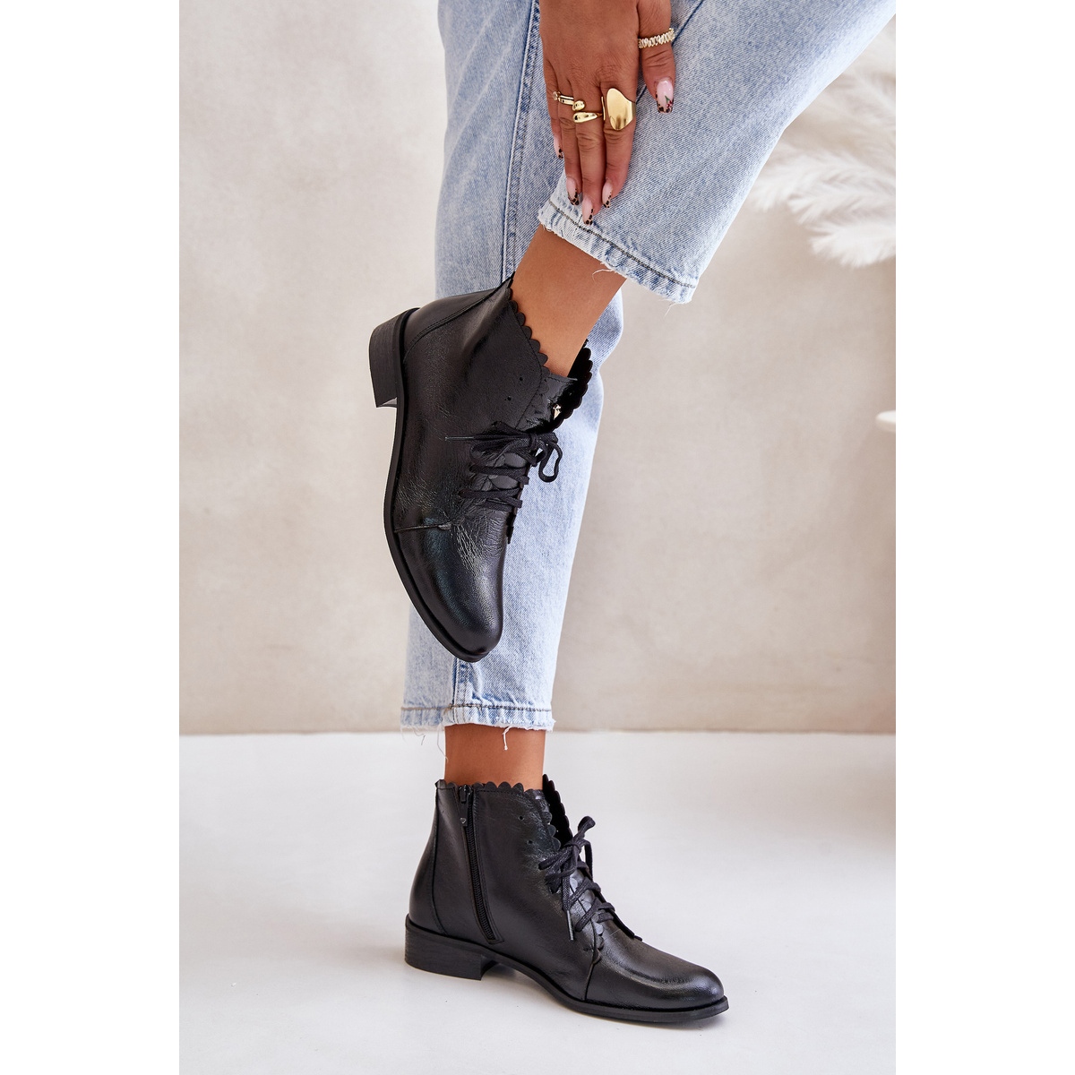 Découvrez les bottines en cuir Zazoo 2964 à talon plat, qui allient élégance et confort. Fabriquées en cuir naturel de haute qualité, ces bottes séduisent par leur souci du détail et leur design classique. Le modèle est doté d'un laçage pratique et d'une fermeture éclair sur le côté de la tige, ce qui facilite son enfilage et son retrait.