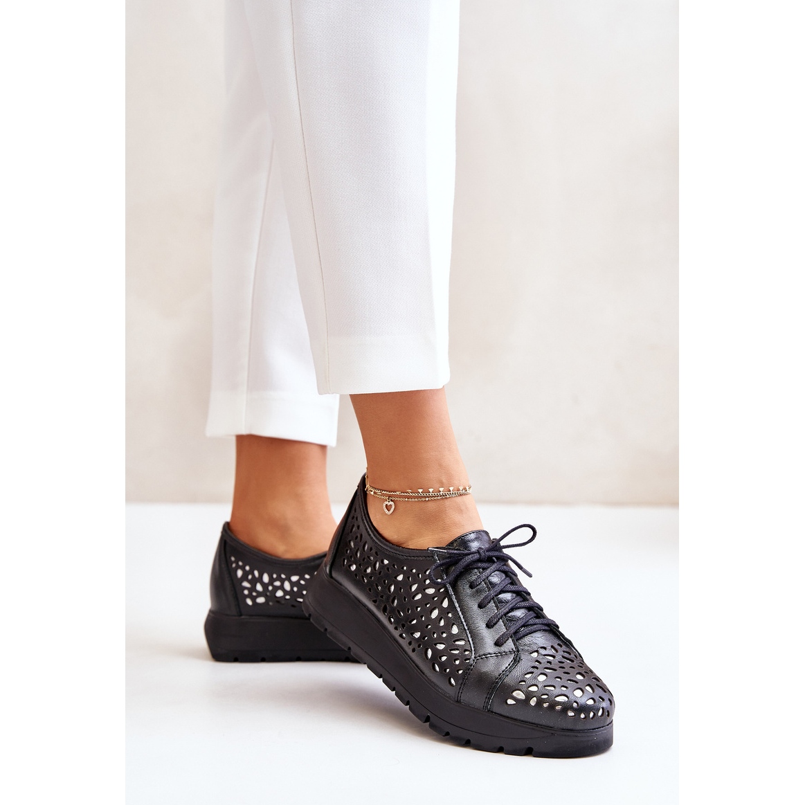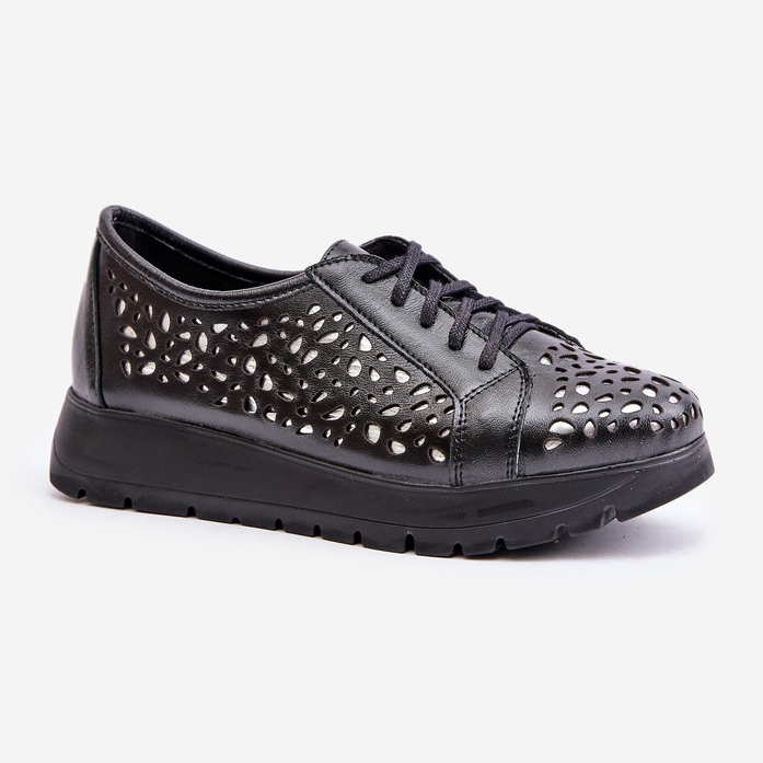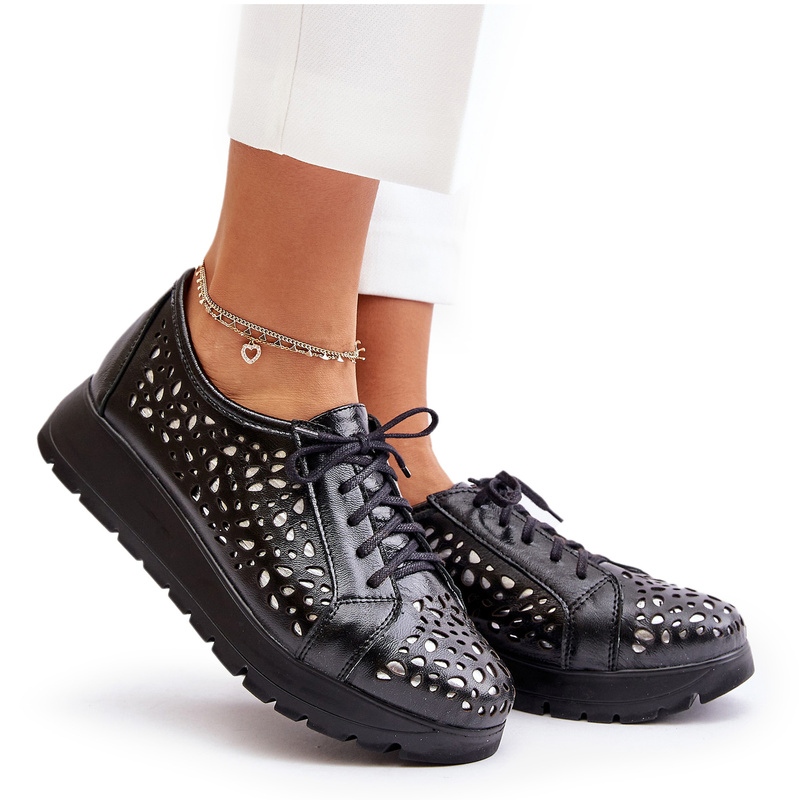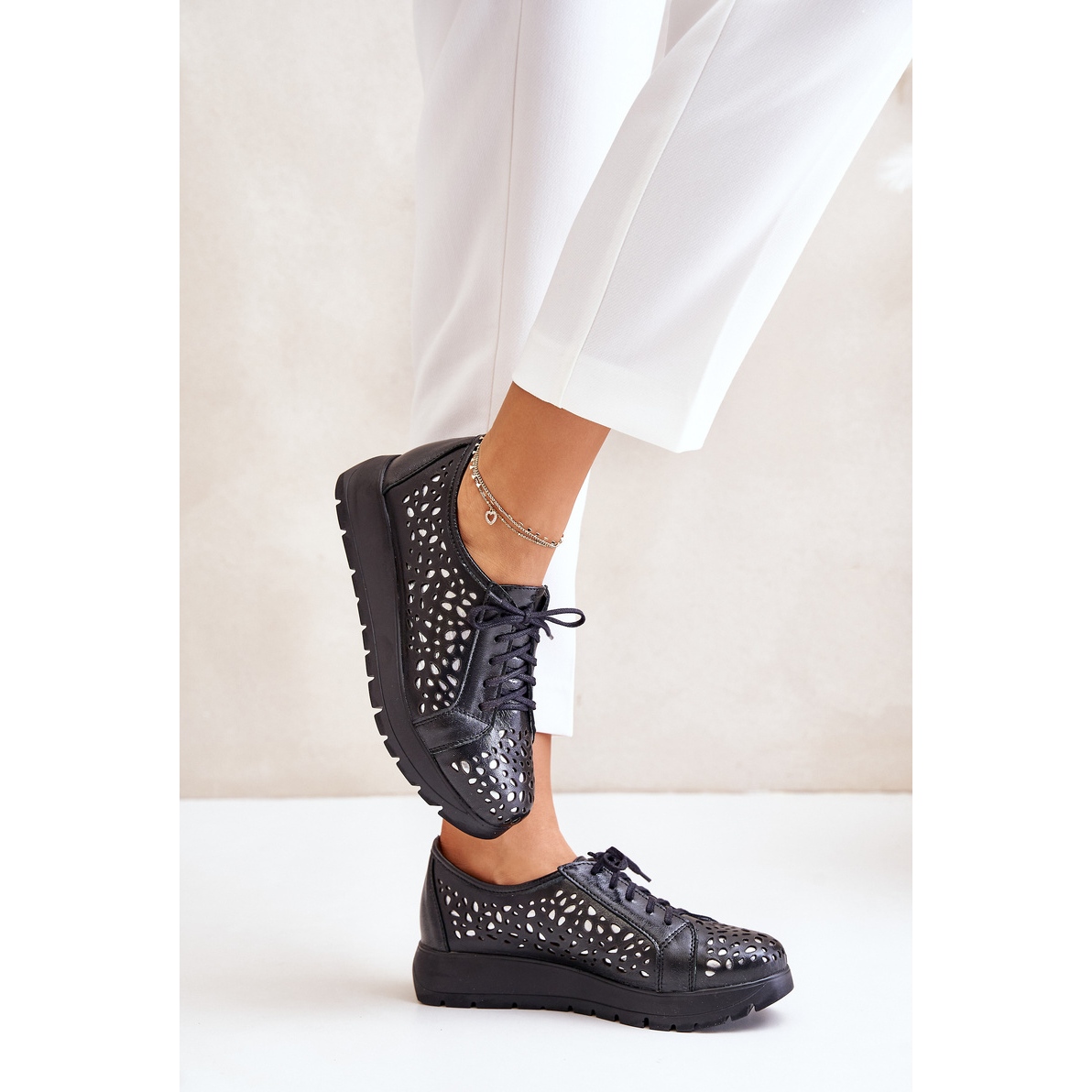 Zazoo Zazoo 2973 Chaussures Plateformes en Cuir à Motif Ajouré, Noir le noir