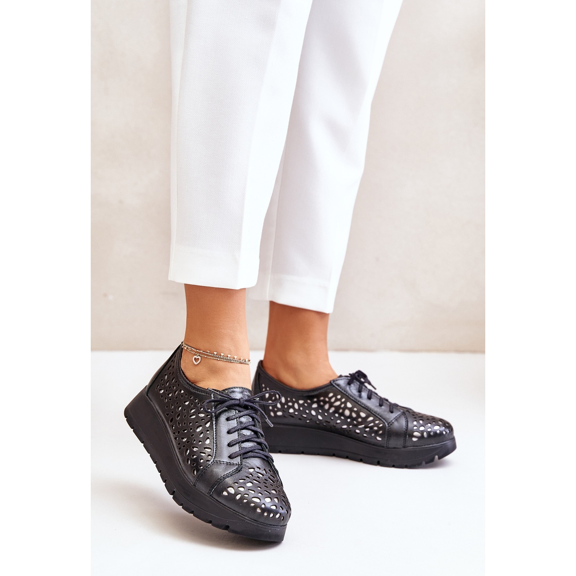 Découvrez le style unique avec les demi-bouts des femmes sur la plate-forme Zazoo 2973! Fabriquées en cuir naturel de la plus haute qualité, ces chaussures noires combinent l'élégance avec un confort extraordinaire. Un nez arrondi et un motif ouvert sur la tige leur donnent la légèreté et l'originalité, ce qui les rend parfaitement s'adapter à n'importe quelle garde-robe.