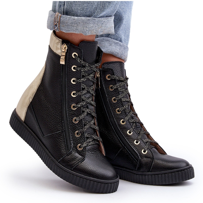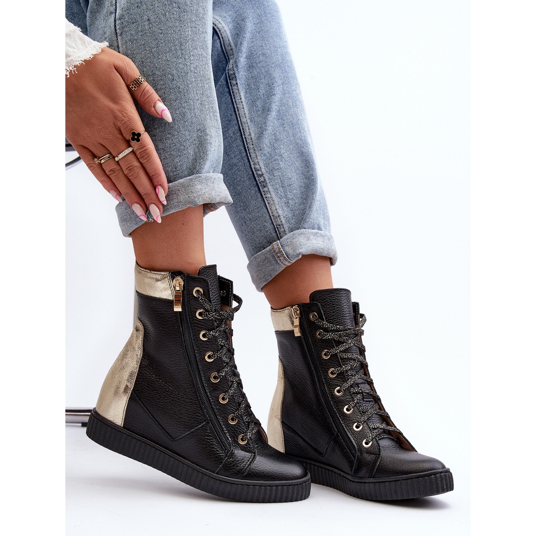 Découvrez le style et le confort uniques grâce aux cales pour femmes en cuir du fabricant de Zazoo. Le modèle 3081 noir avec un accent doré supplémentaire est la solution parfaite pour les femmes qui apprécient à la fois l'élégance et le confort quotidien. Fabriquées en cuir naturel de haute qualité, ces baskets combinent la durabilité avec un look à la mode.