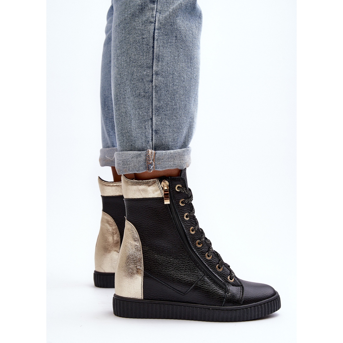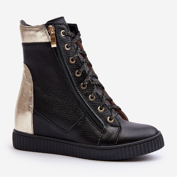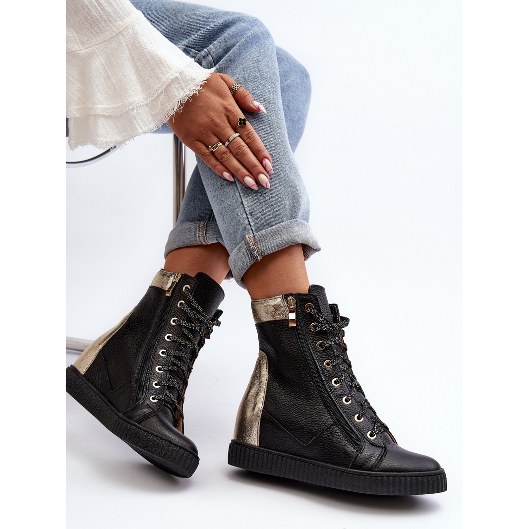 Zazoo Zazoo 3081 Baskets compensées en cuir pour femme Noir le noir