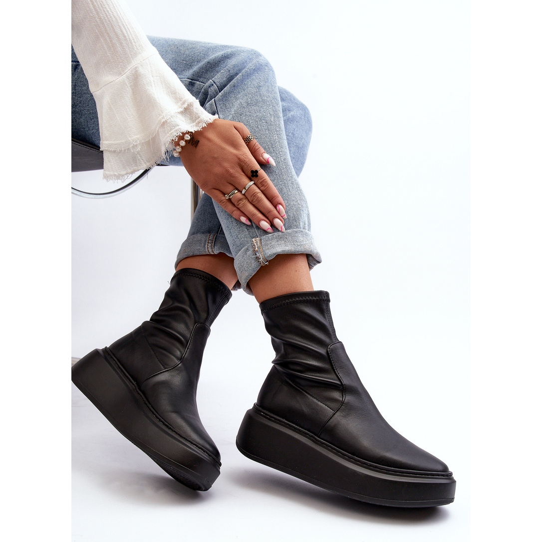 Vous recherchez des chaussures alliant élégance, confort et design original ? Nous avons quelque chose de spécial pour vous : Zazoo 3395, des bottes en cuir pour femmes sur une plateforme massive en noir classique. Parfaites pour les journées printanières, elles ajouteront du caractère et de l'originalité à votre coiffure.