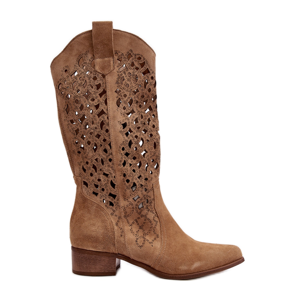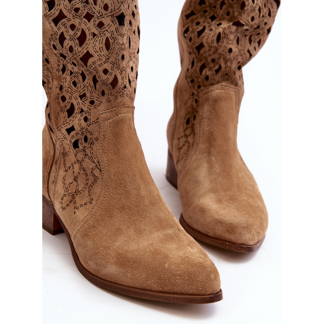 Découvrez une élégance et un confort uniques à chaque pas avec les bottes *Zazoo 3403 ajourées à talons bas pour femme, beige*. Il s'agit d'une combinaison unique de style et de confort, créée pour les femmes qui apprécient à la fois l'esthétique et la fonctionnalité. Confectionnées en daim naturel de haute qualité, ces bottines beiges sont un véritable bijou dans la garde-robe de chaque femme.