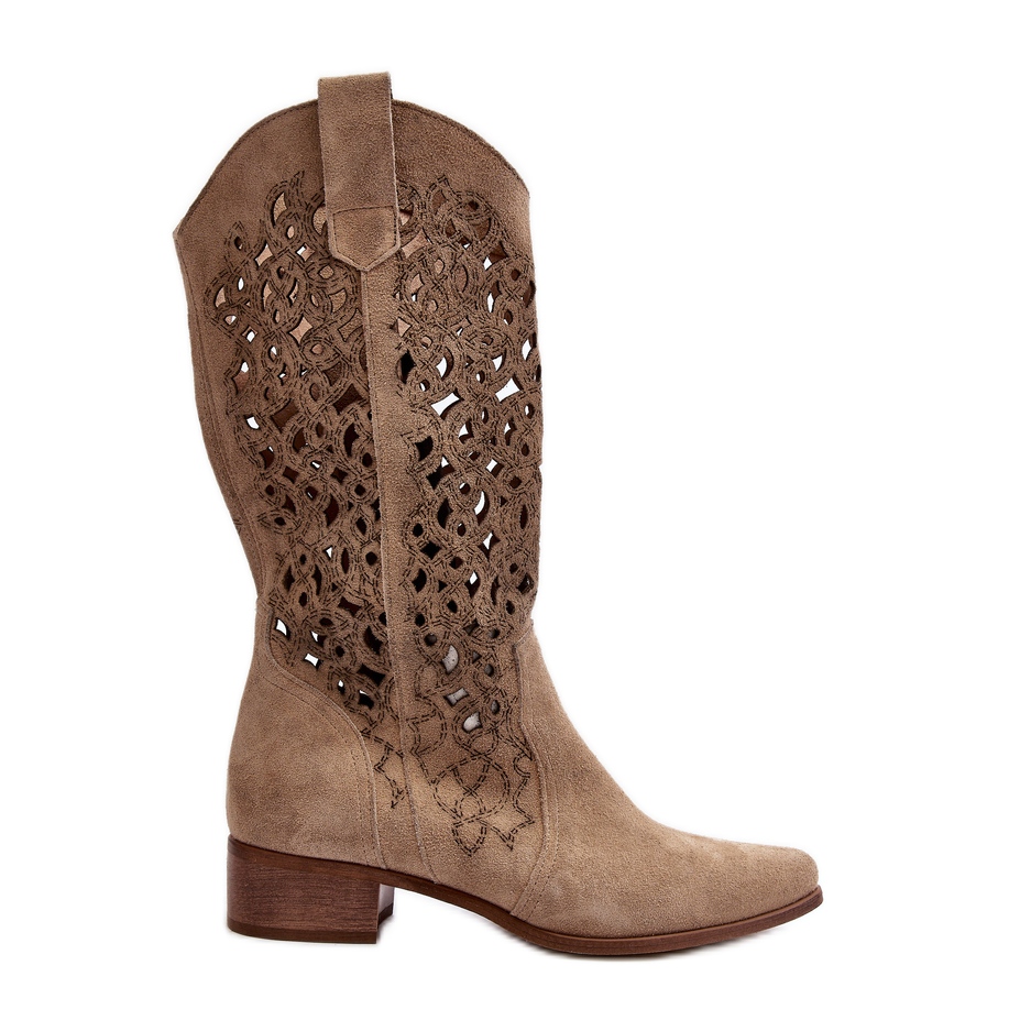 Découvrez l'élégance et le confort de porter avec des bottes féminines ouvertes Zazoo 3403 dans une teinte légère portant. Ces bottes élégantes sont en daim naturel, ce qui leur donne un caractère unique et de haute qualité. Attachés avec une fermeture éclair, ils ont une tige à demi-coude, ce qui garantit un ajustement parfait.