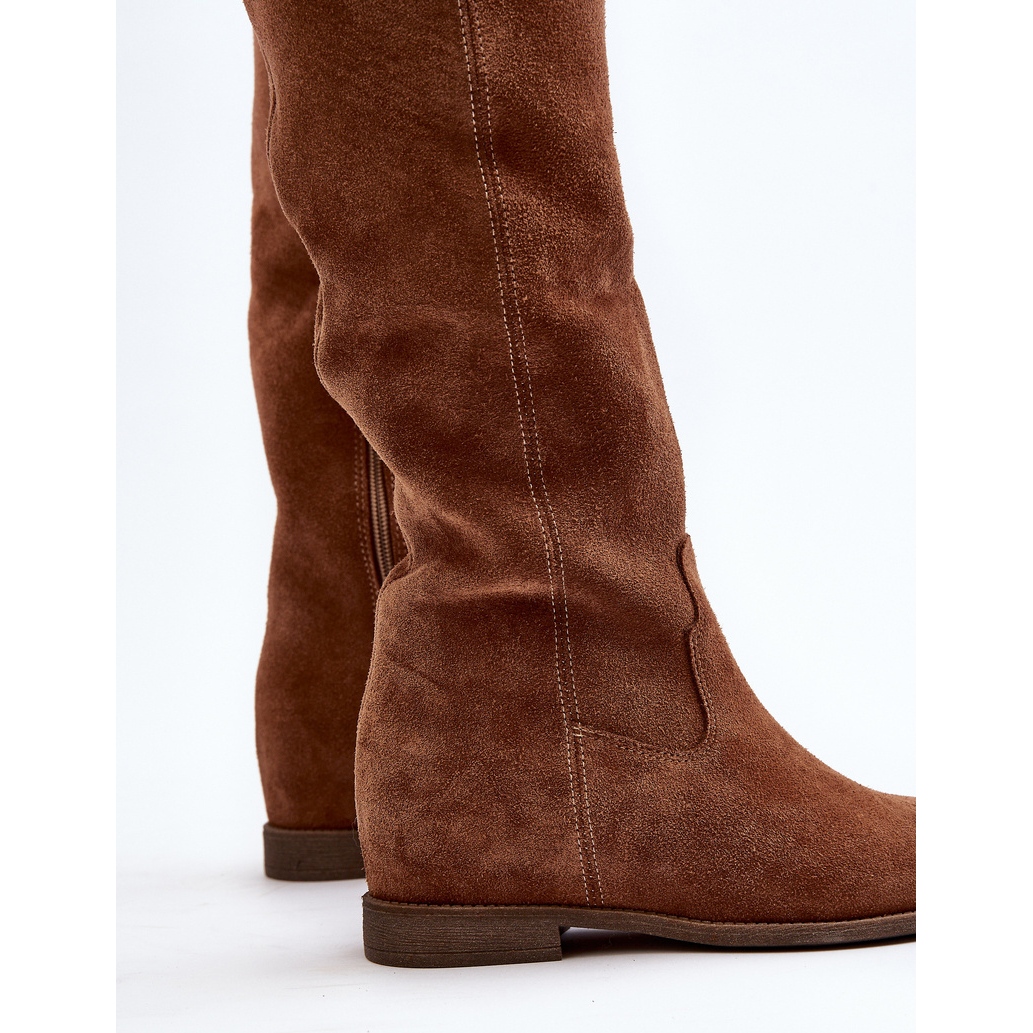 Zazoo Zazoo 3407 Bottes hauteur genou en daim à talons plats camel brun