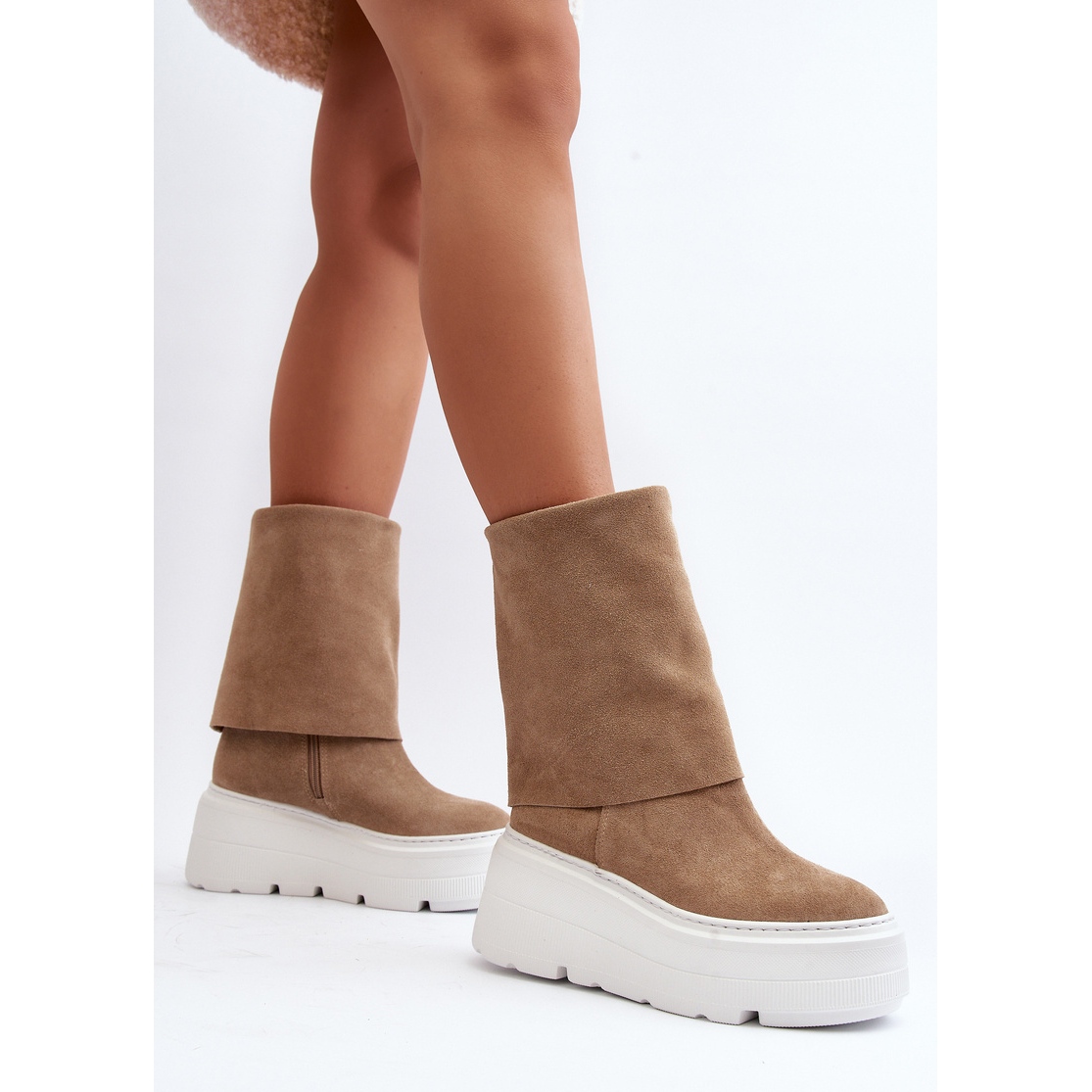 - Modèle: Bottines en daim pour femmes sur une plateforme massive