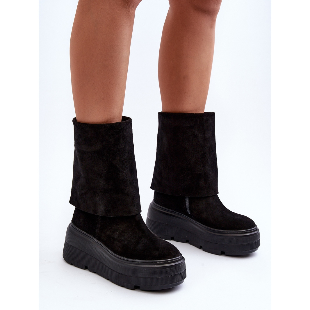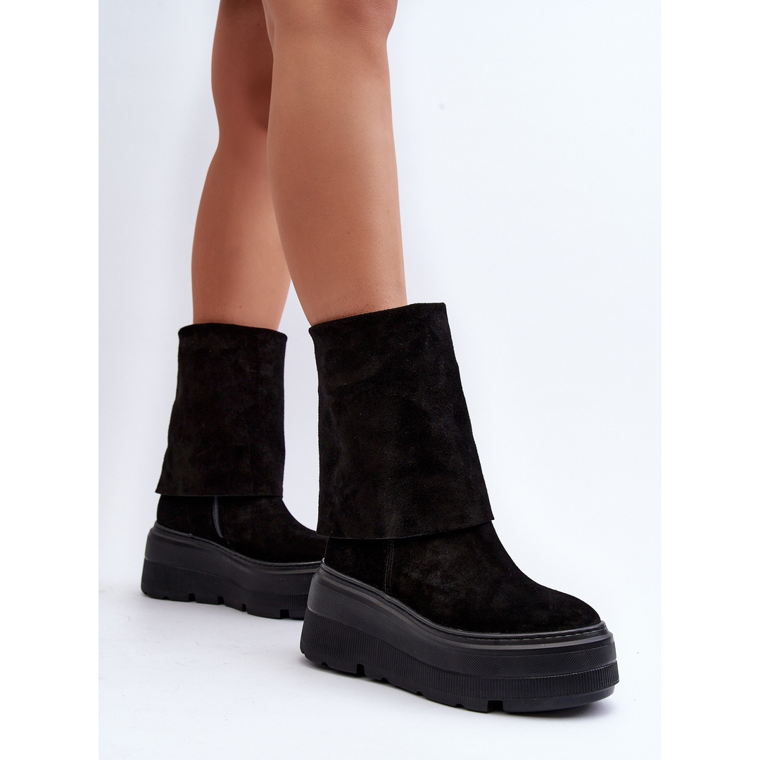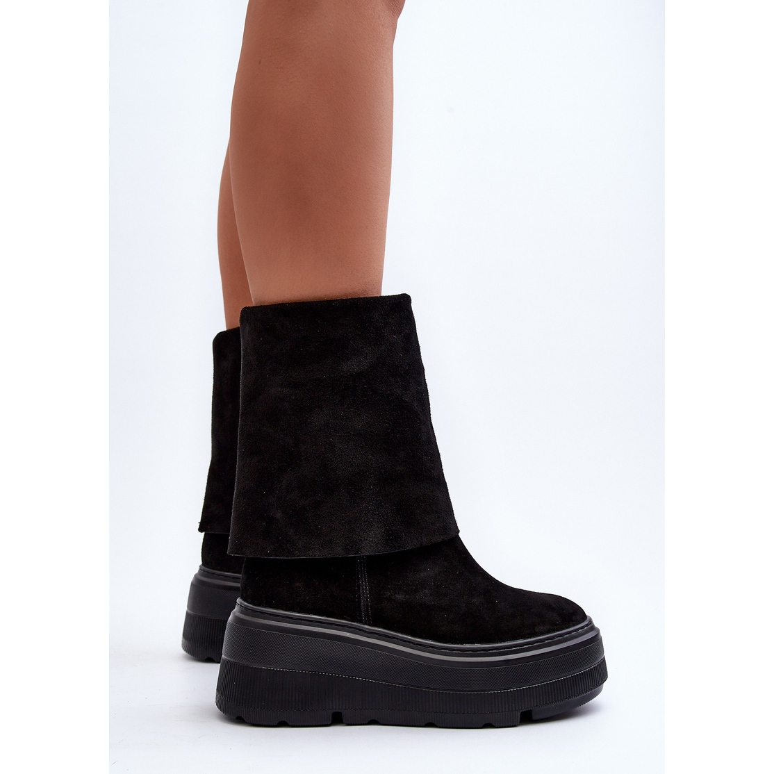 - Modèle: Bottines en daim pour femmes sur une plateforme massive