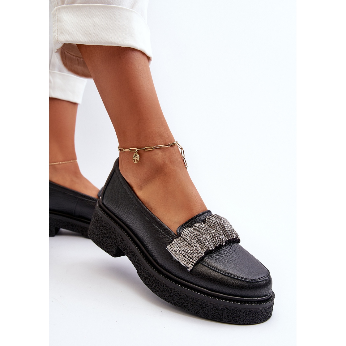 Voici une proposition idéale pour les femmes qui veulent combiner l'élégance et le confort - les femmes 3419 mocassins pour femmes. Fabriquées en cuir naturel de haute qualité, ces mocassins noirs se distinguent par leur conception unique. Leur devant est décoré d'une sangle forgé, décorée de zircons subtils, ce qui leur donne un charme supplémentaire.