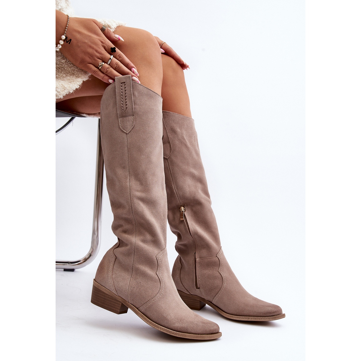 - Modèle: Bottes cowboy en daim cappuccino pour femmes