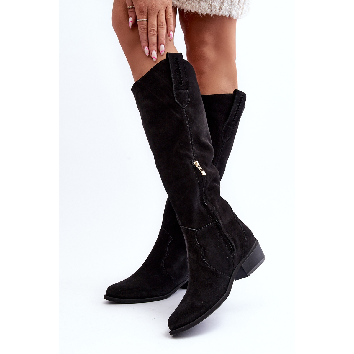 Détails: Zazoo 3427 Bottes de cowboy en daim pour femme Noir le noir