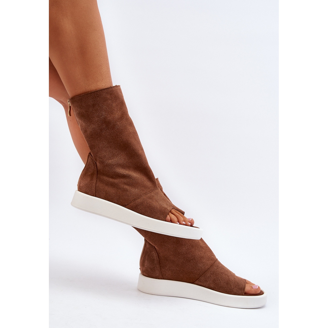 Leur couleur brune subtile avec une finition en daim les rend parfaitement se fondre avec diverses stylisations d'été - à la fois tous les jours et plus élégants. La hauteur de la cheville assure la stabilité et le soutien, ce qui est extrêmement important pendant les promenades plus longues ou les réunions d'été en plein air. De plus, la fermeture à glissière à l'arrière facilite la mise en place et la suppression des sandales, tout en y ajoutant un personnage moderne.