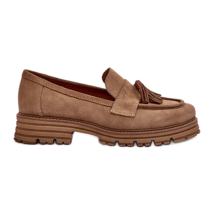 Mocassins femme en daim à franges Zazoo 3469, beige : l'élégance rencontre le confort