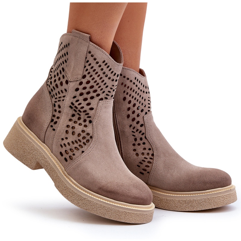 Détails: Zazoo 3470 Bottines Femme En Daim Sur Talons Plats Ajouré Cappuccino beige