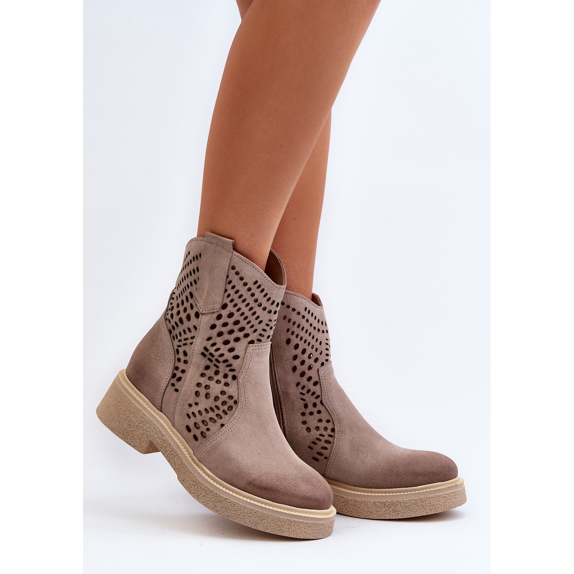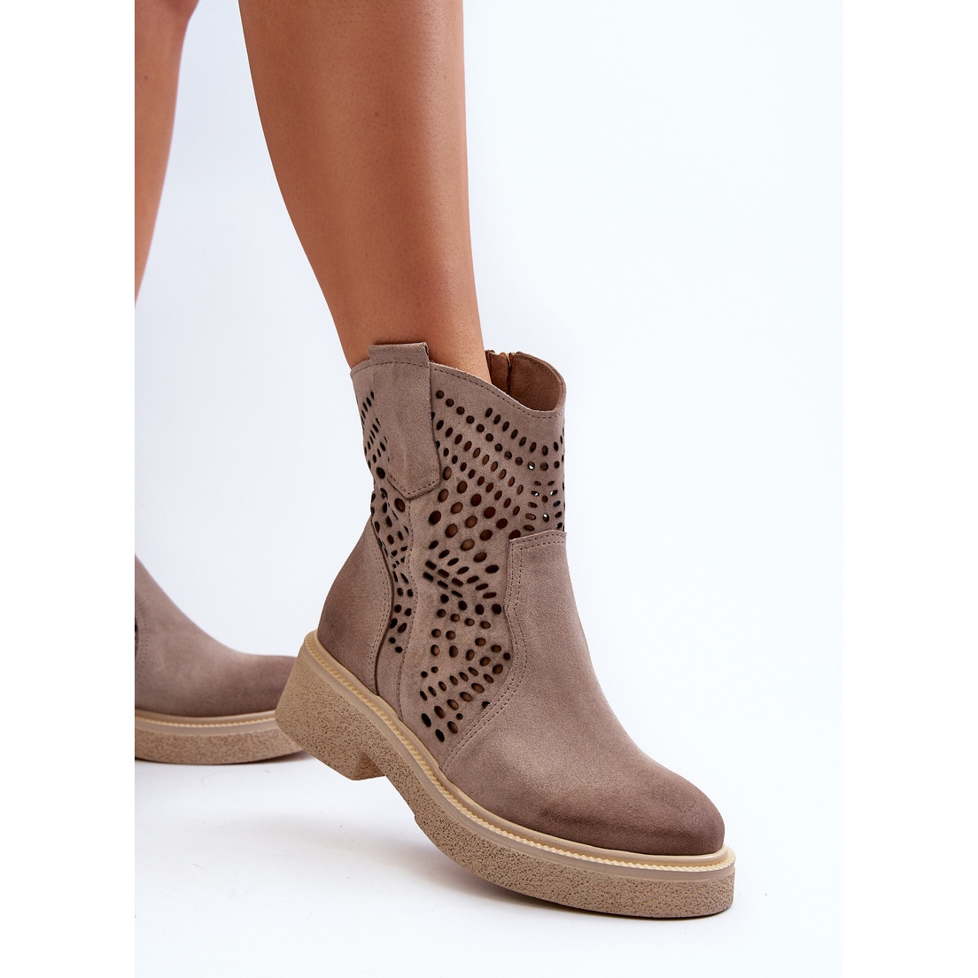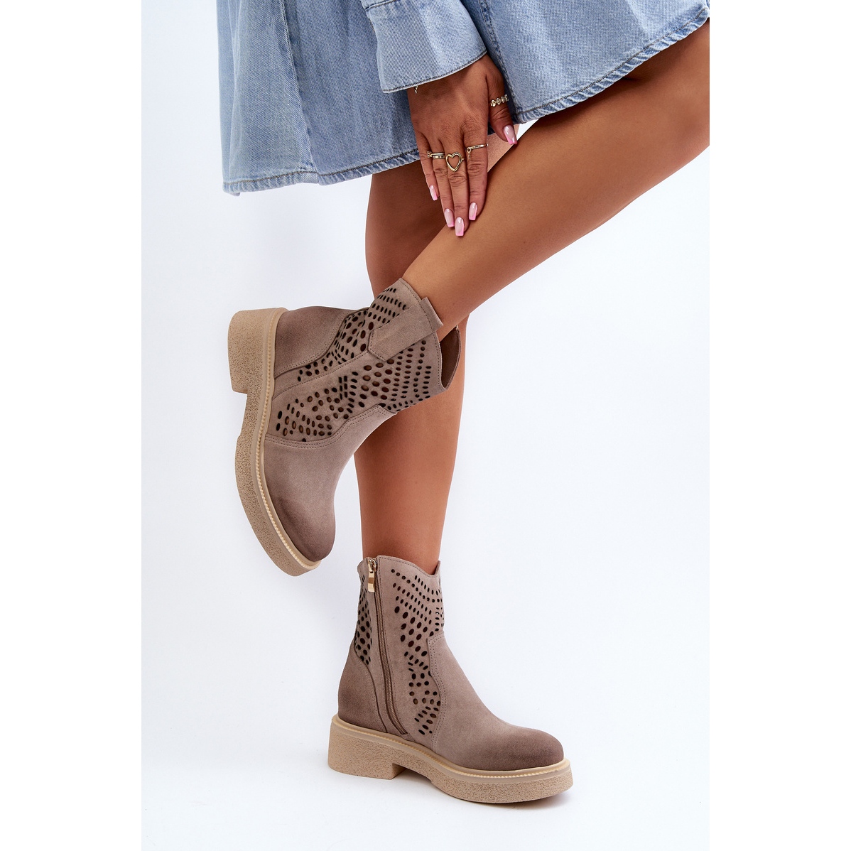 Zazoo Zazoo 3470 Bottines Femme En Daim Sur Talons Plats Ajouré Cappuccino beige