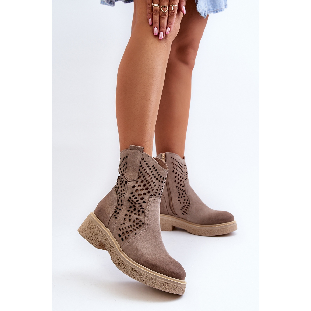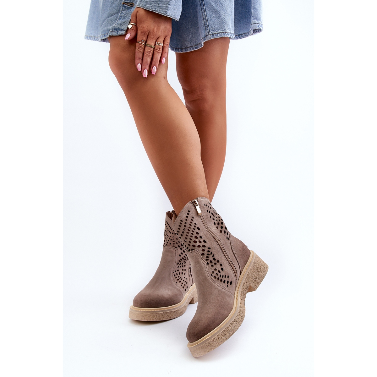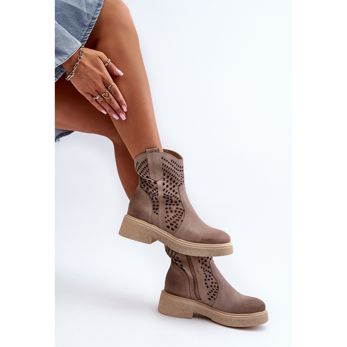 Zazoo Zazoo 3470 Bottines Femme En Daim Sur Talons Plats Ajouré Cappuccino beige