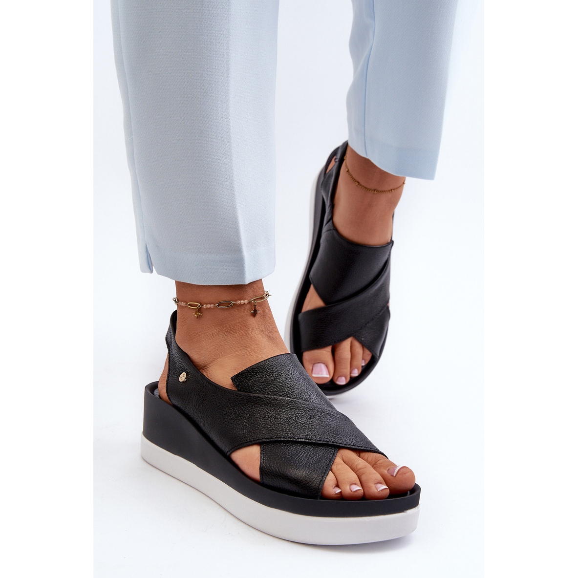Zazoo Zazoo 40256 Sandales compensées en cuir, noir le noir