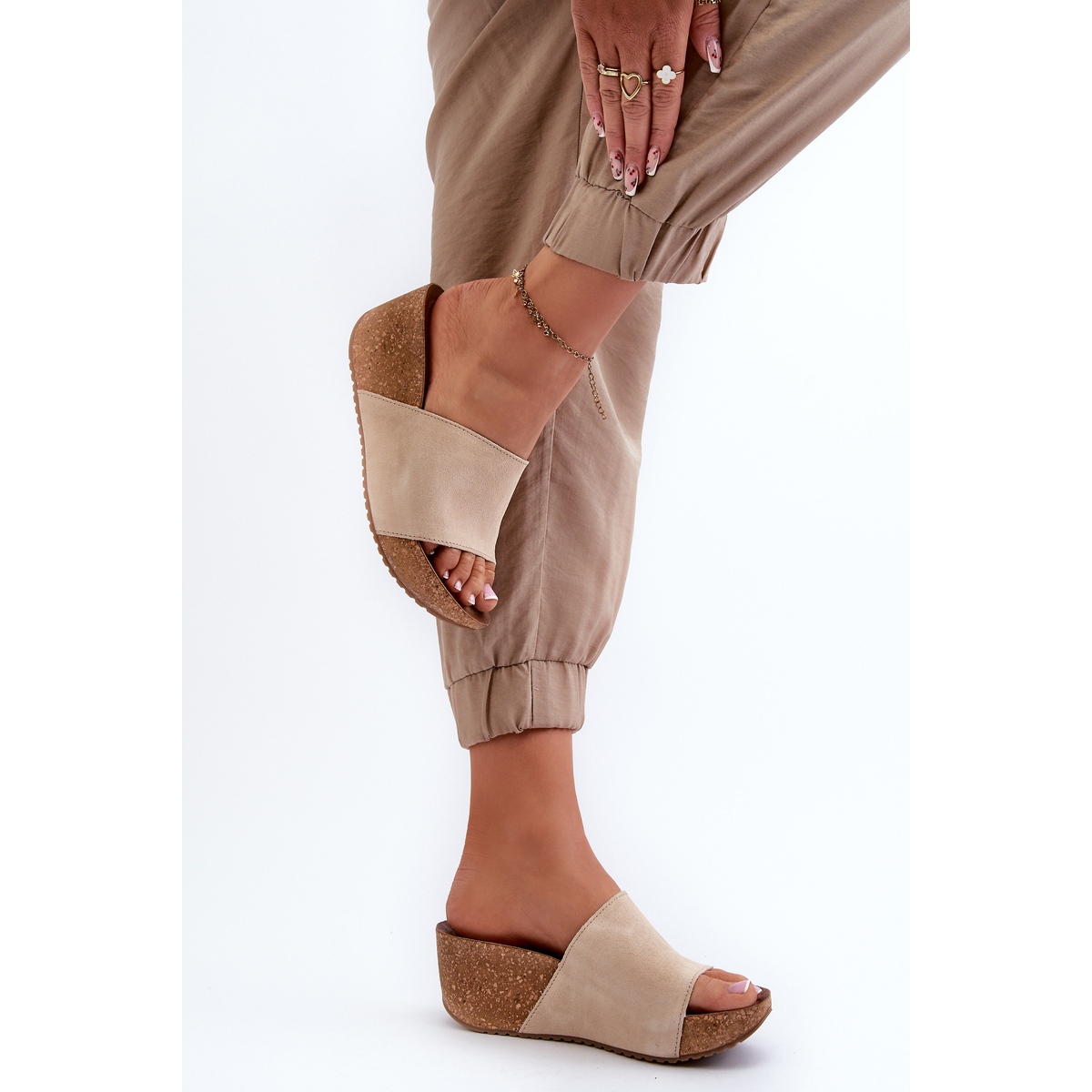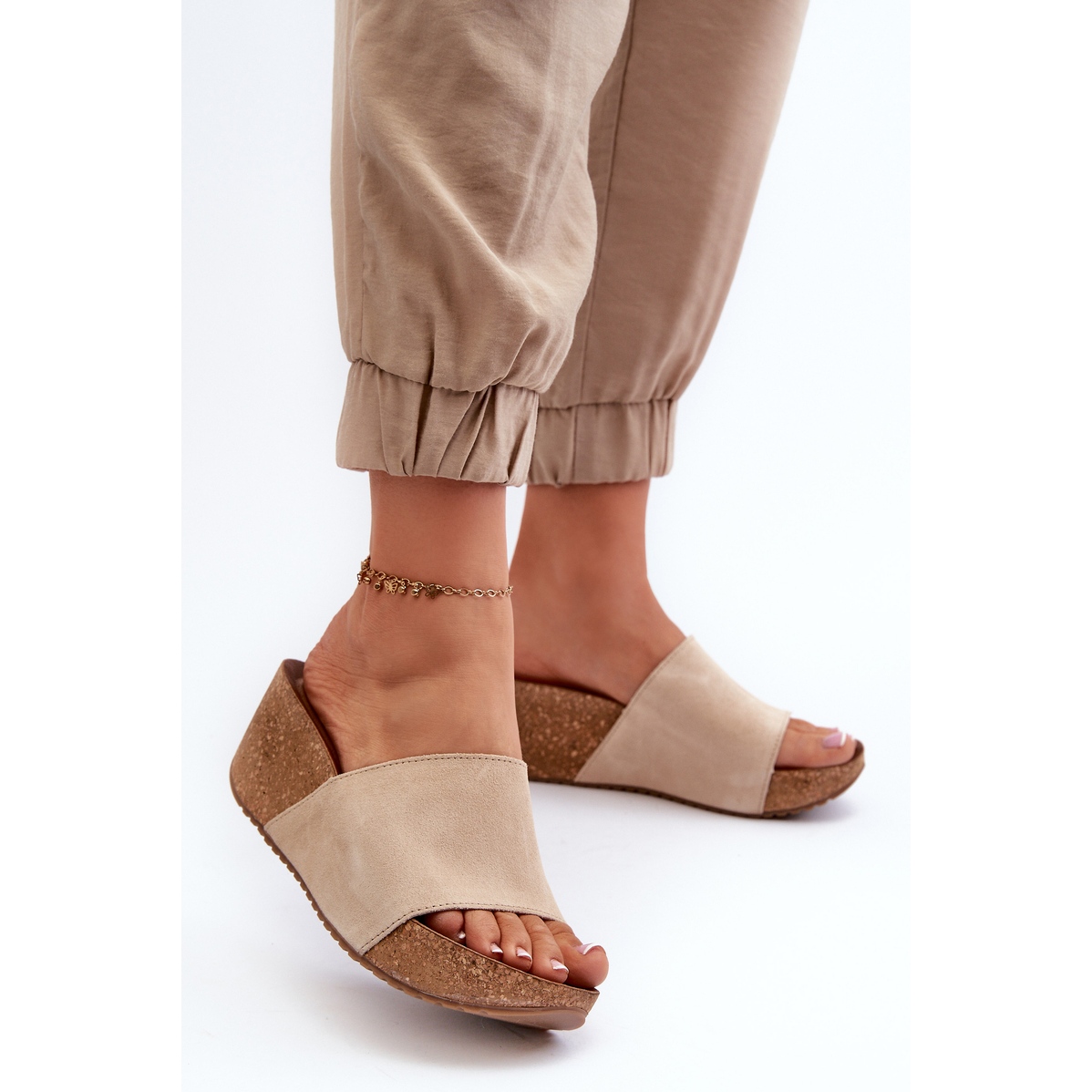 - Modèle: Tongs pour femmes en daim avec coin en liège