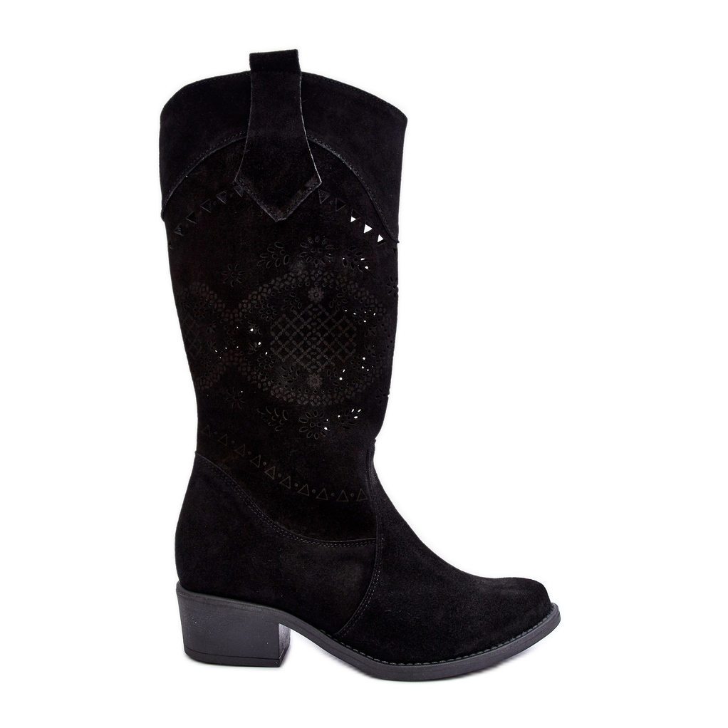 Détails: Zazoo 4043 bottes à talons hauts ajourés en daim noir