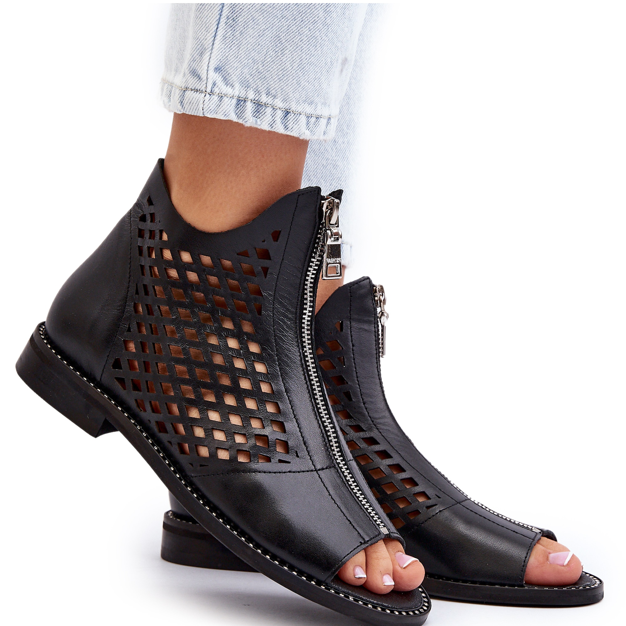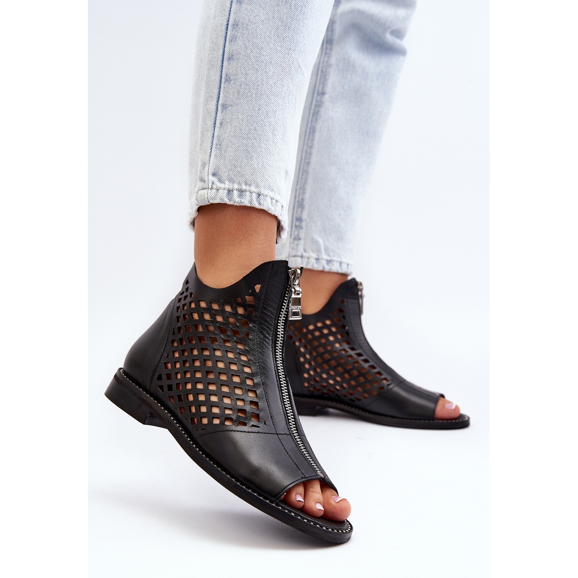 Zazoo Zazoo 977/L Sandales Ajourées En Cuir Avec Fermeture Éclair le noir